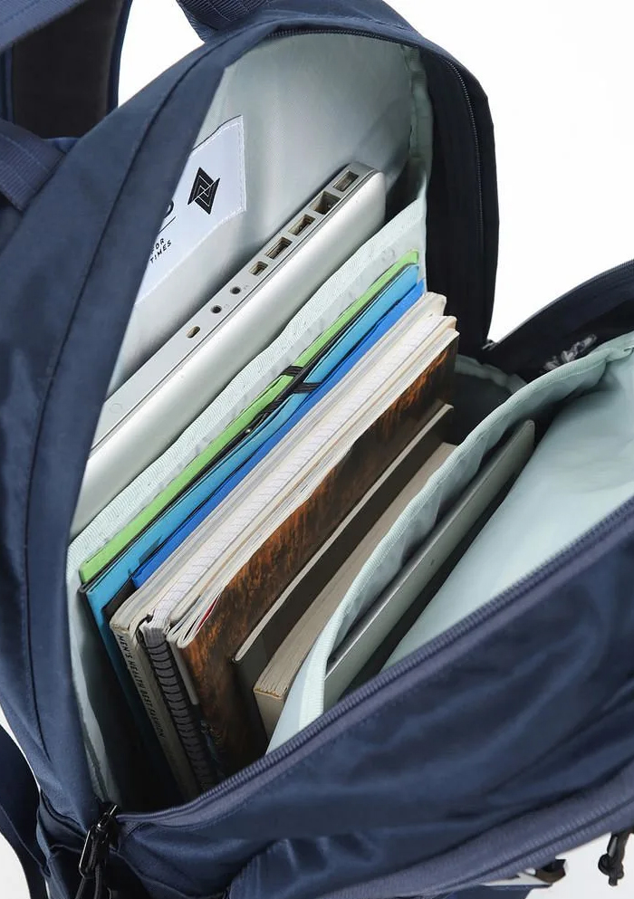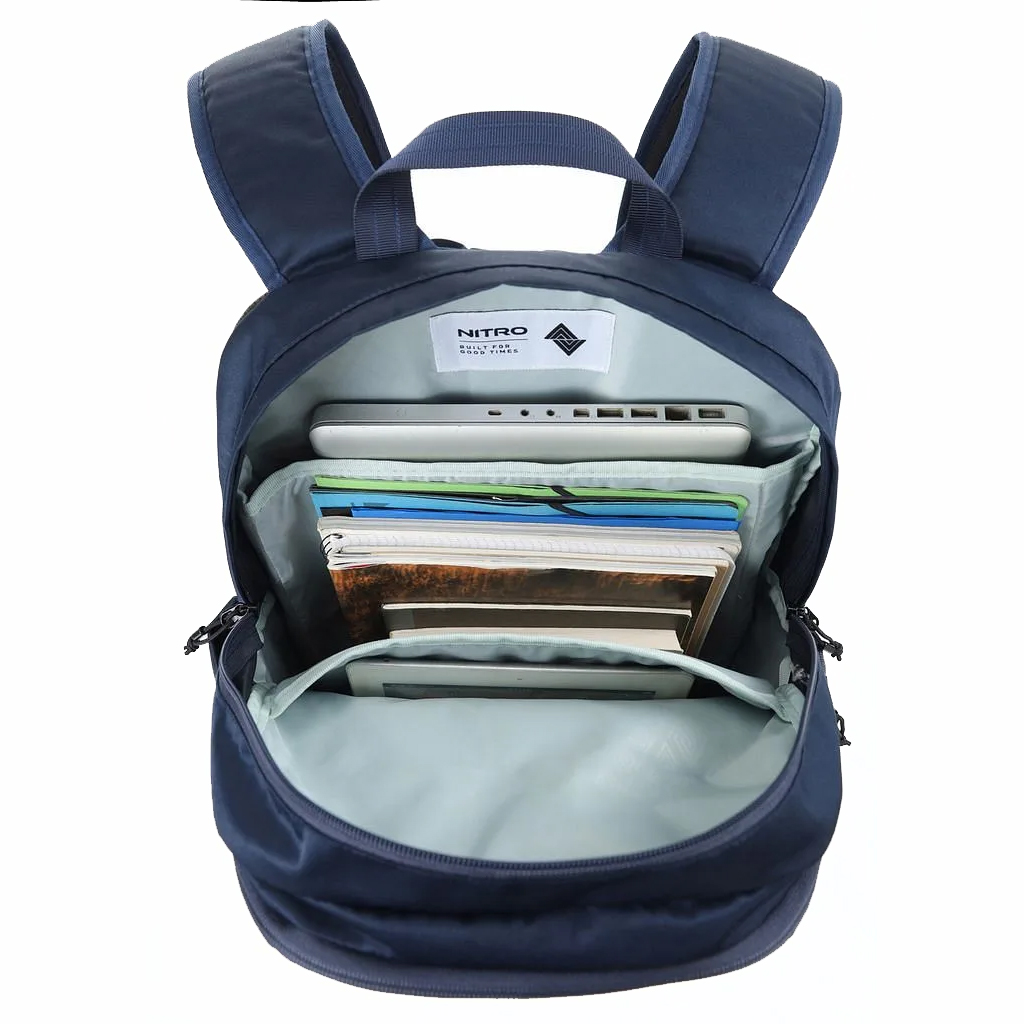 Prostorná hlavní komora s polstrovanou kapsou na notebook až 17" a samostatnou vypolstrovanou přihrádkou na tablet. Dostatek místa pro učebnice a dokumenty.