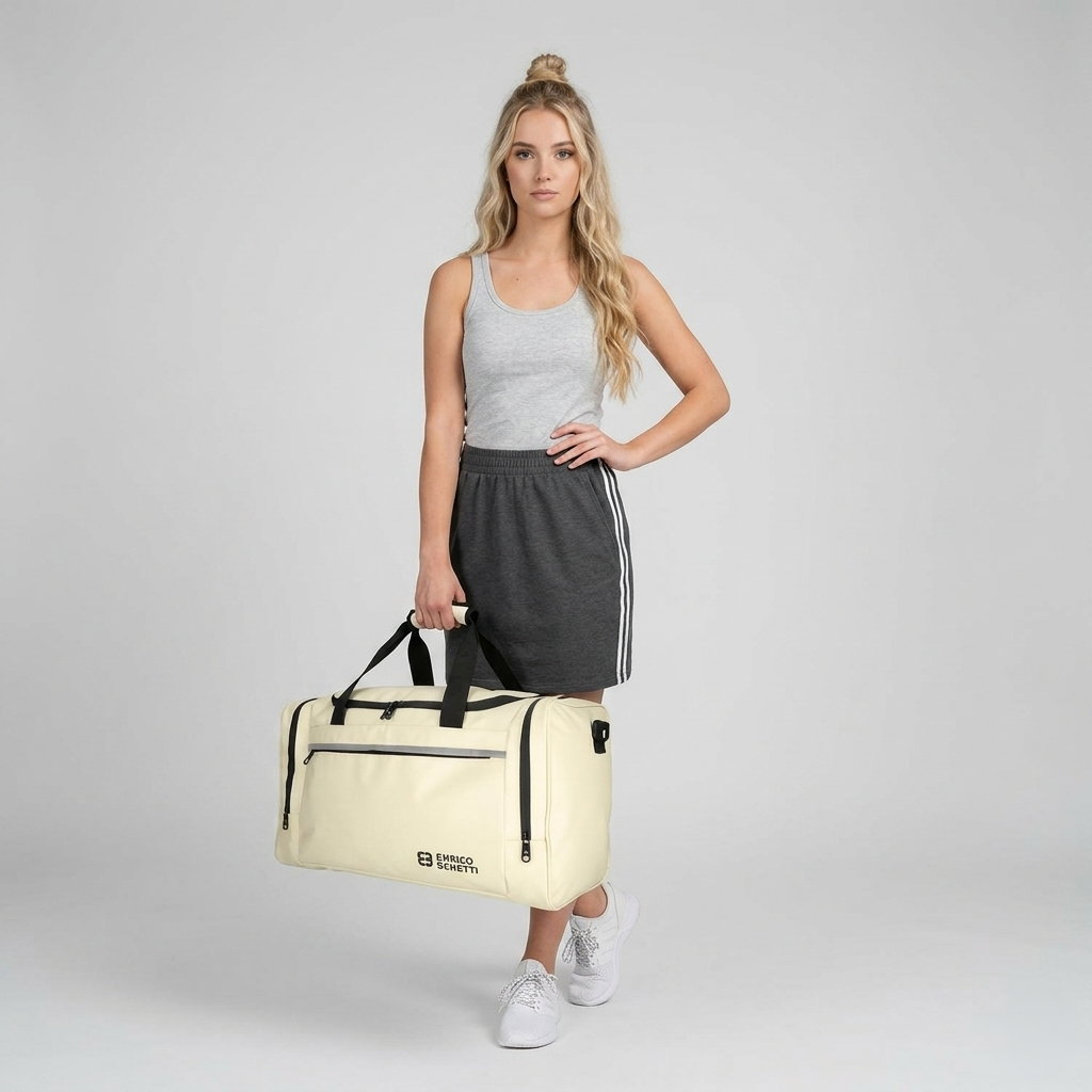 Cestovní taška Enrico Benetti Arctic ve svěží světle béžové barvě je ideální volbou pro všechny, kdo hledají spolehlivé, lehké a stylové zavazadlo na cesty i sport. Díky vodoodpudivému materiálu se nemusíte obávat nepříznivého počasí – vaše věci zůstanou v bezpečí i při nečekané přeháňce.
