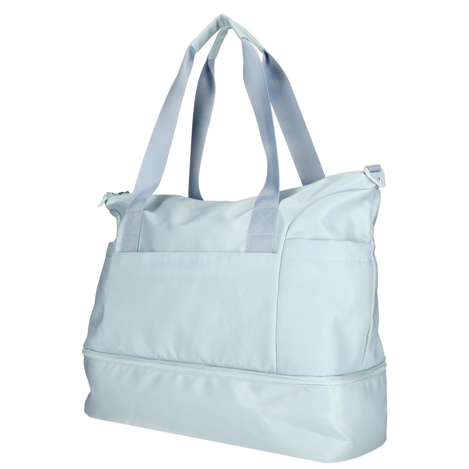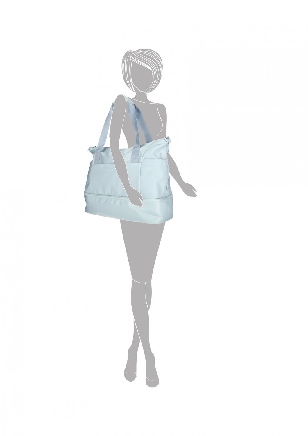 Dámská sportovní taška Enrico Benetti z kolekce Lakers spojuje moderní eleganci s maximální funkčností. Díky velkorysému objemu a chytrému členění poskytuje dostatek prostoru nejen pro sportovní vybavení, ale i pro víkendové cestování či každodenní využití. Jemné světle modré provedení dodává tašce univerzální a elegantní vzhled, který se snadno kombinuje s jakýmkoliv outfitem.