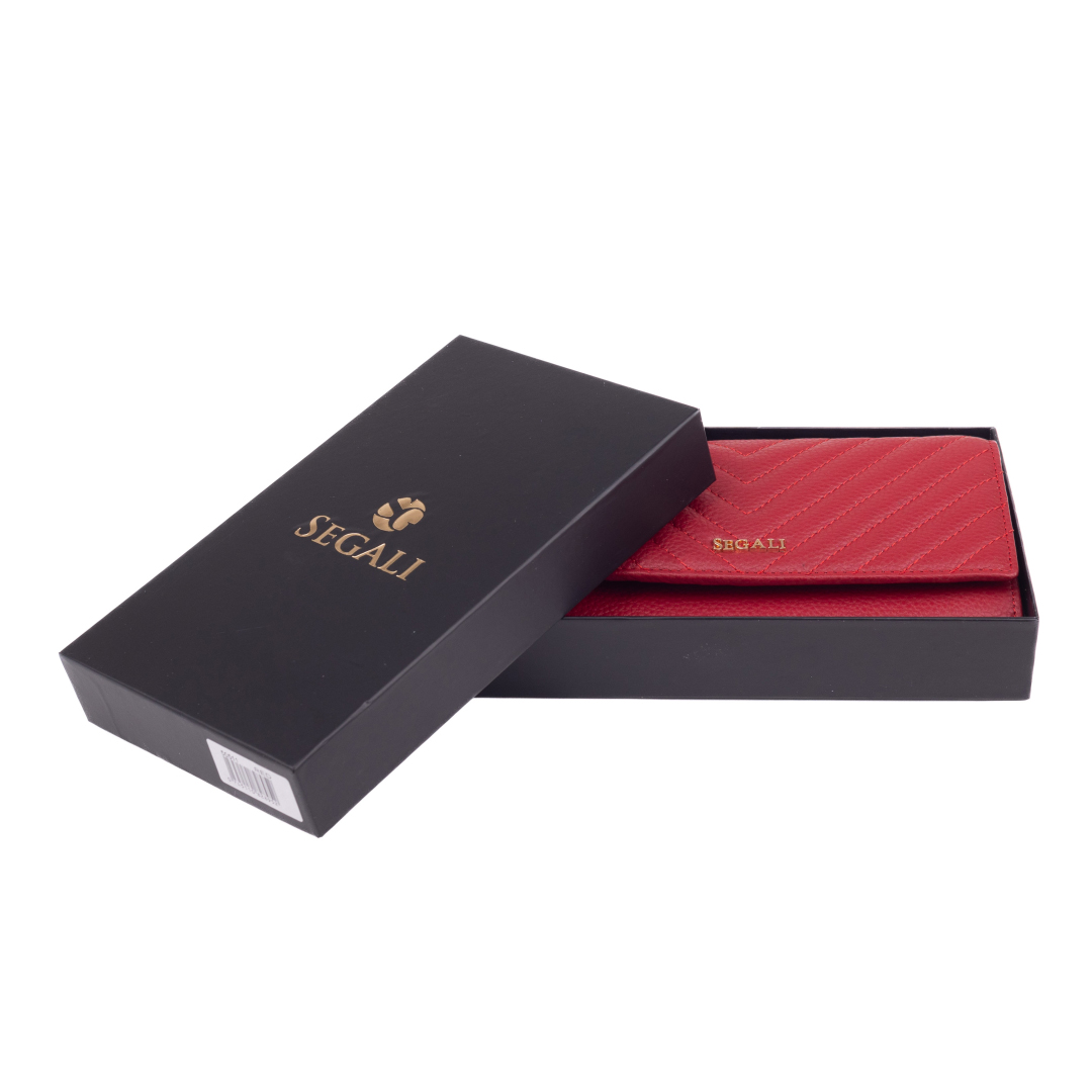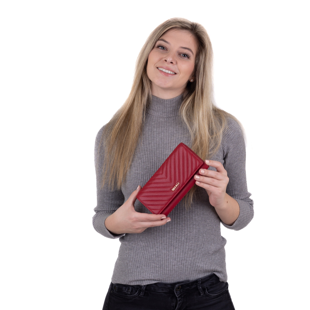 Dostupná je v pěti atraktivních barvách: klasická černá, nestárnoucí červená, pudrová růžová, elegantní bordó a trendová barva sezóny – zelený čaj. Každá peněženka je balena v pevné dárkové krabičce přímo od výrobce SEGALI, což z ní dělá i skvělý tip na dárek.