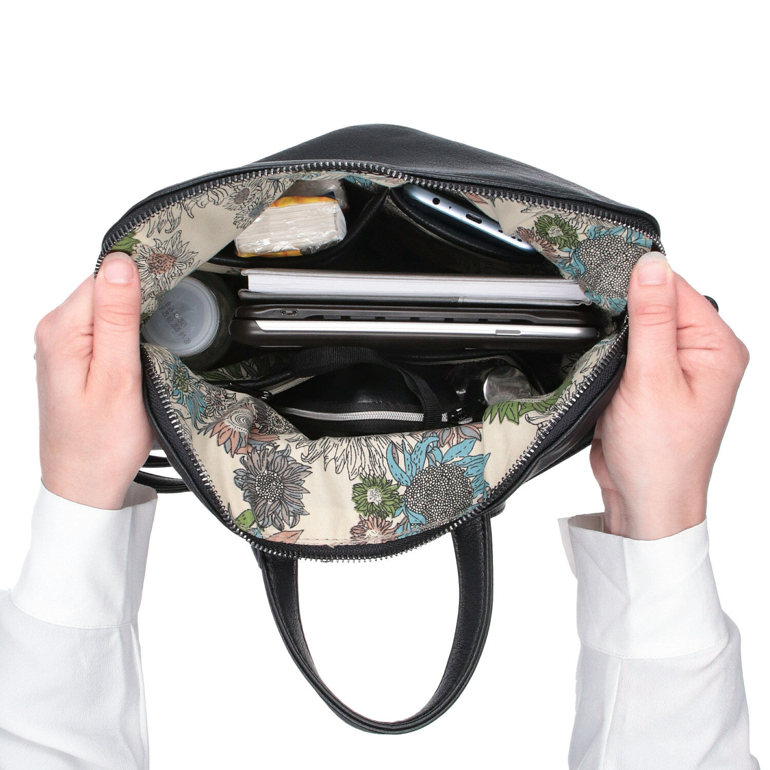 Praktické zipové kapsy na přední i zadní straně umožňují mít telefon, klíče nebo peněženku vždy po ruce a bezpečně uložené. Hlavní prostor se zapíná na zip a uvnitř najdete kvalitní látkovou podšívku, která podtrhuje celkové zpracování batohu.