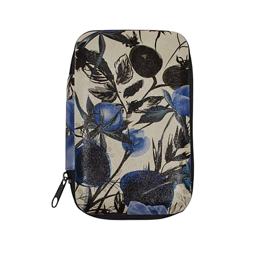 Rodinná plně vybavená 11-dílná manikúrní sada je vyrobena z kůže s motivem velkých květů, uzavírá se zipem.