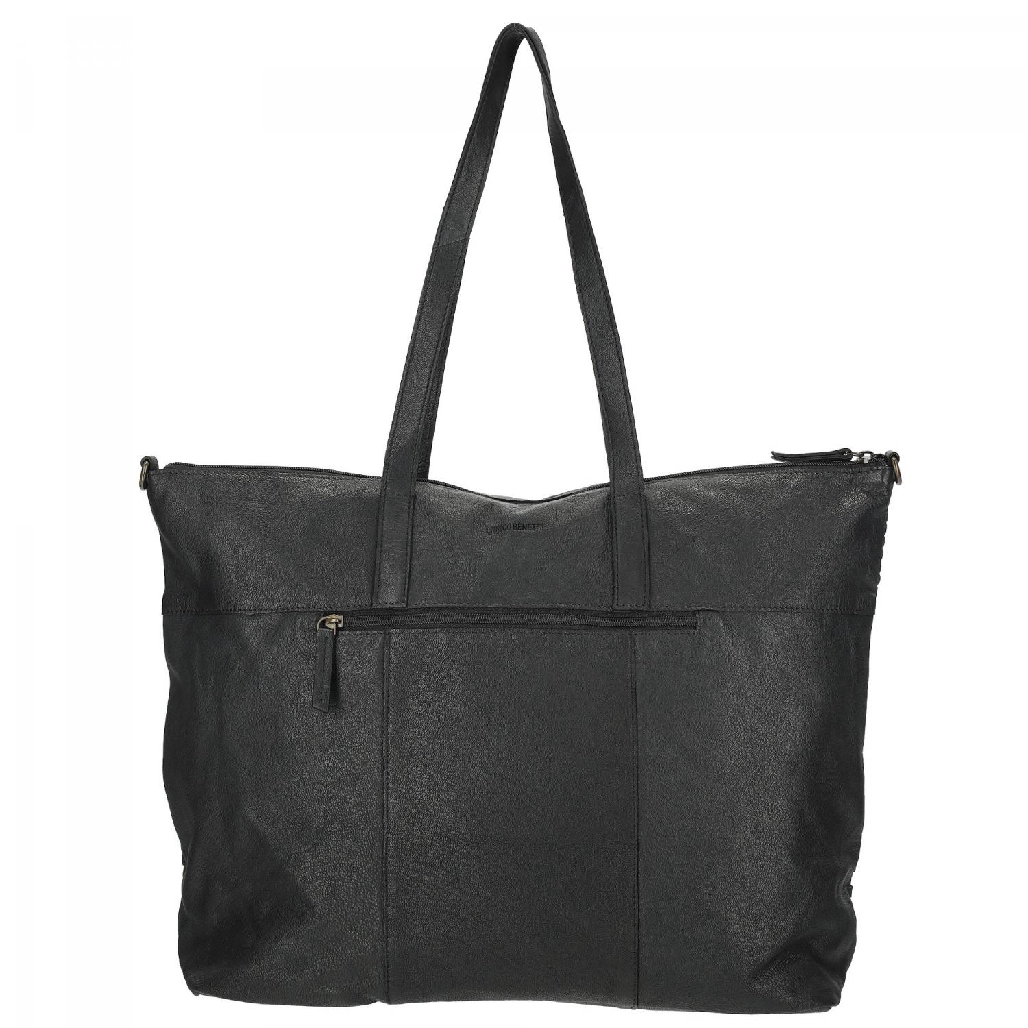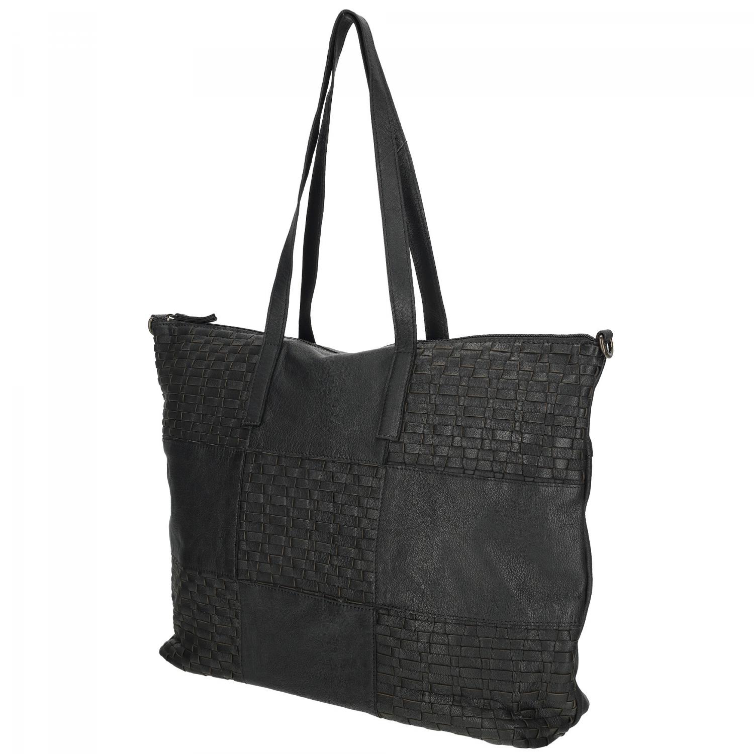 Proplétaná velká kožená shopper kabelka Sicily 89033-001 černá