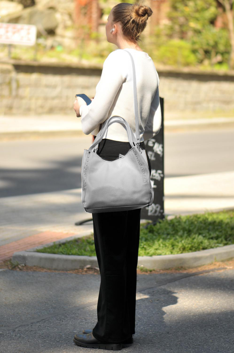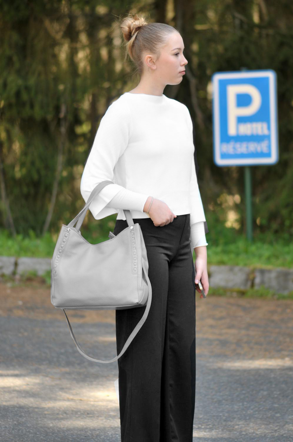 Kožená kabelka 5770 světle šedá, MAXFLY