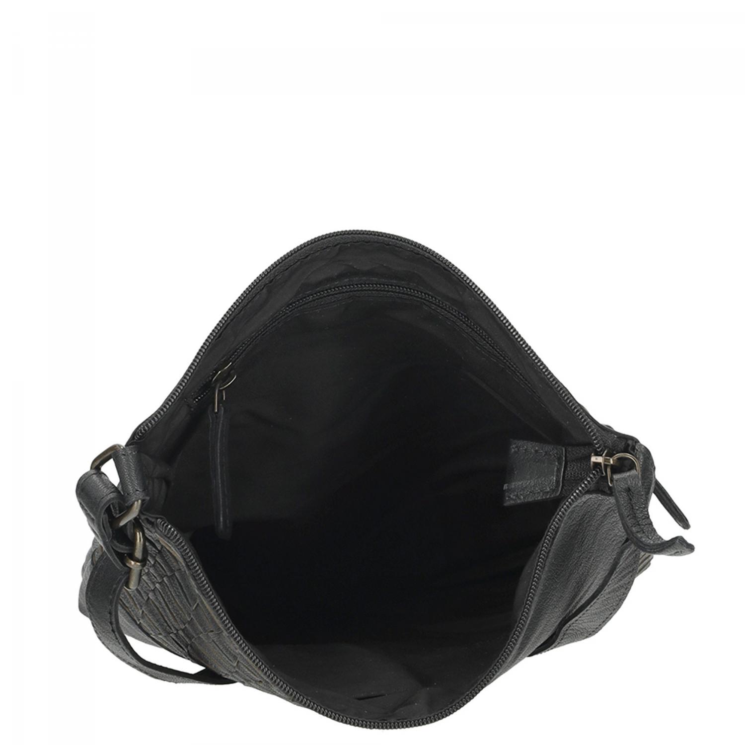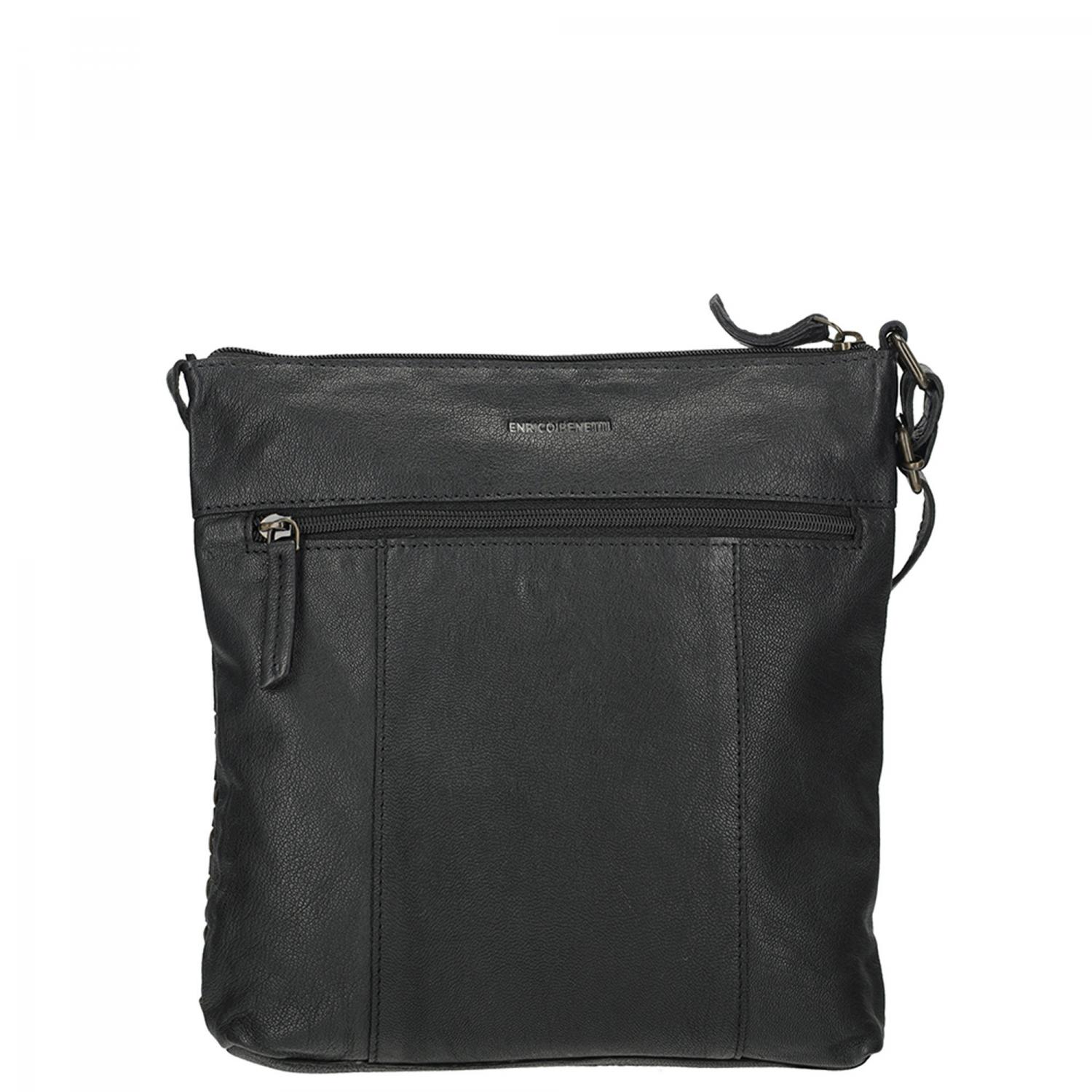 Černá proplétaná kožená crossbody kabelka Enrico Benetti
