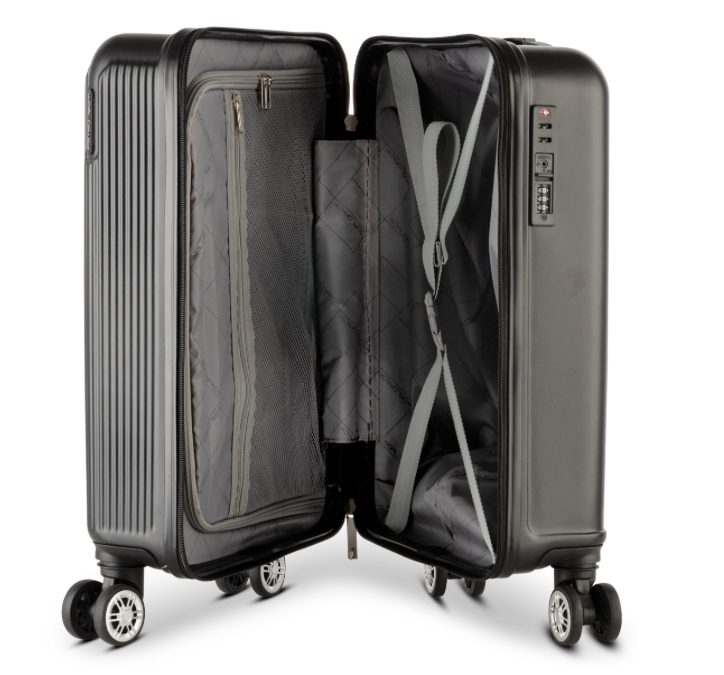 Díky čtyřem dvojitým otočným kolečkům a výsuvné teleskopické rukojeti se s kufrem manipuluje snadno i v úzkých uličkách letadla nebo vlaku. Kufr se uzavírá obousměrným zipem a má integrovaný číselný TSA zámek na kód pro větší bezpečí.