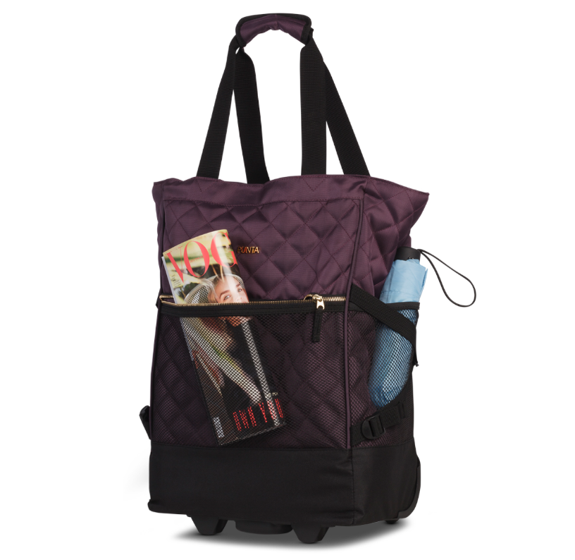 Elegantní a praktická nákupní taška na kolečkách PUNTA whell s velkou vnitřní a vnější kapsou. V nové světle růžové barvě. Je ideální i na kratší víkendové cesty, nebo jako kabinovové zavazdlo do letadla, dobře se s taškou cestuje také vlakem.
