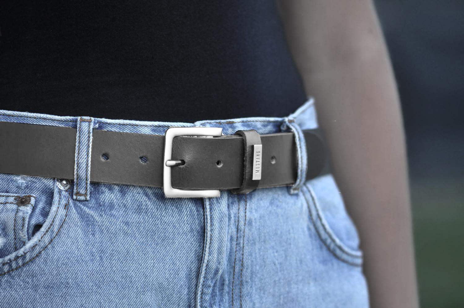 Detail v podobě kovového loga Mustang na průvleku dodává opasku osobitý vzhled. Zabarvené hrany a pečlivě upravený rub pásku zabraňují zabarvení oděvu a zvyšují komfort při nošení. Opasek lze navíc snadno zkrátit pomocí šroubku, který spojuje pásek s koženým dílem u spony.