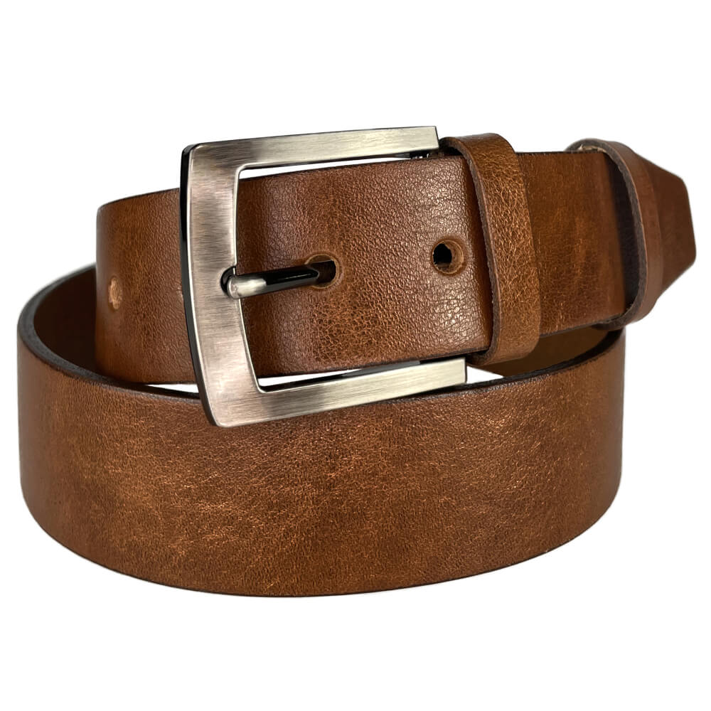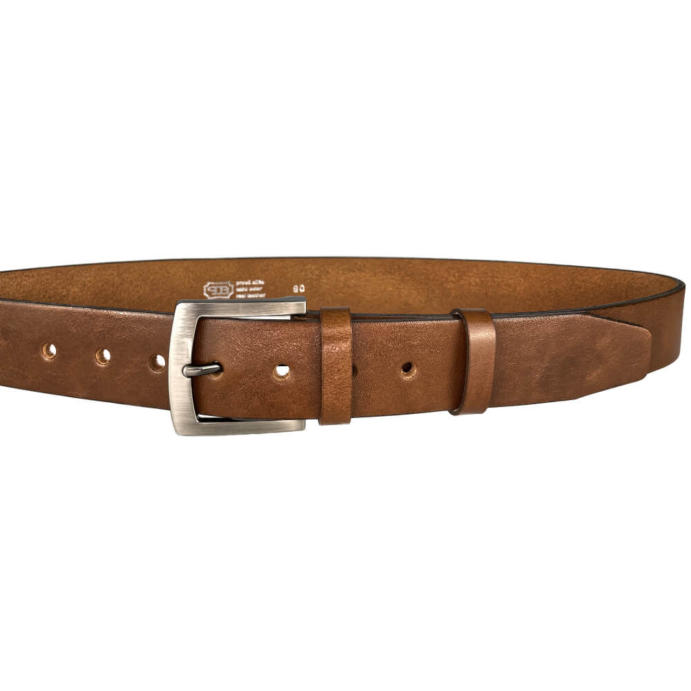Kvalitní kožený pásek je jedním ze základních doplňků každého pánského šatníku. Pokud hledáte opasek, který budete moci kombinovat jak k formálnímu tak i volnočasovému outfitu, bude tento model tou pravou volbou. Pásek je vyrobený z kvalitní hovězí kůže a má šířku 4 cm. Spona pásku s povrchovou úpravou NKS (nikl satinato) je ve stříbrné barvě a obsahuje nikl. Díky šroubovacímu mechanismu lze pásek lehce zkrátit na libovolnou délku. Opasek je k dispozice v různých délkách.