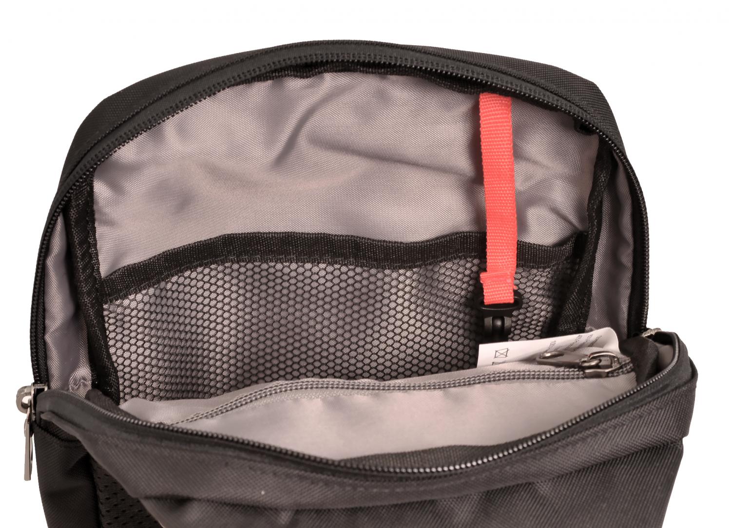 • Hlavní přihrádka se uzavírá dvoucestným zipem a obsahuje: