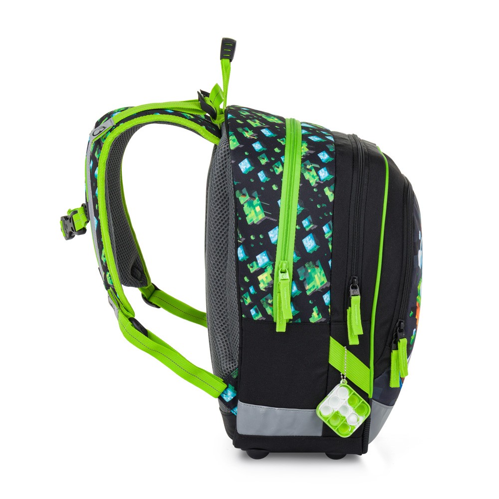 Lehký školní batoh s hmotností pod 1 kg, navržený s důrazem na ergonomii a pohodlné každodenní nošení. Kostičkový motiv inspirovaný herním světem zaujme malé školáky a pomůže jim těšit se do školy.